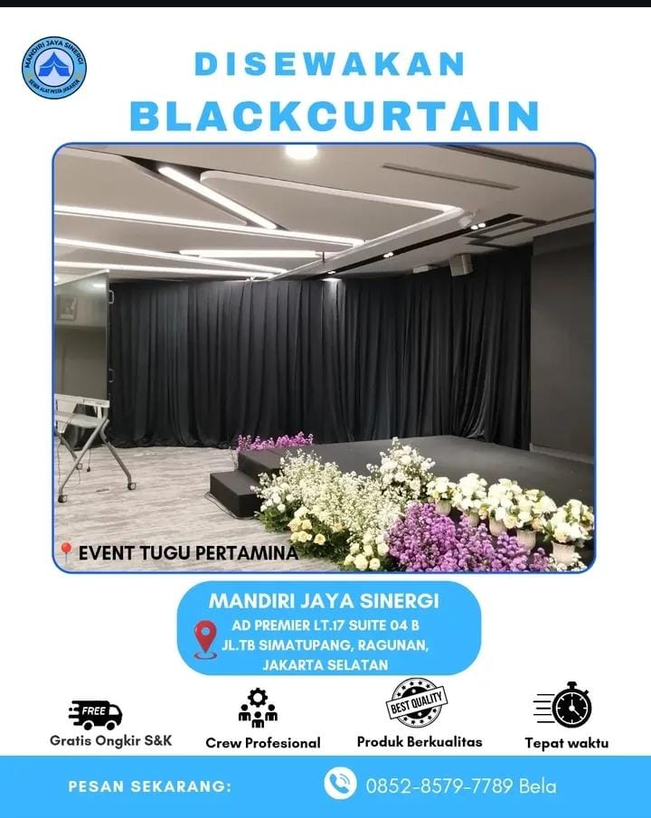 - Penggunaan: Backdrop panggung, ballroom, konferensi, gala dinner, wedding, corporate event